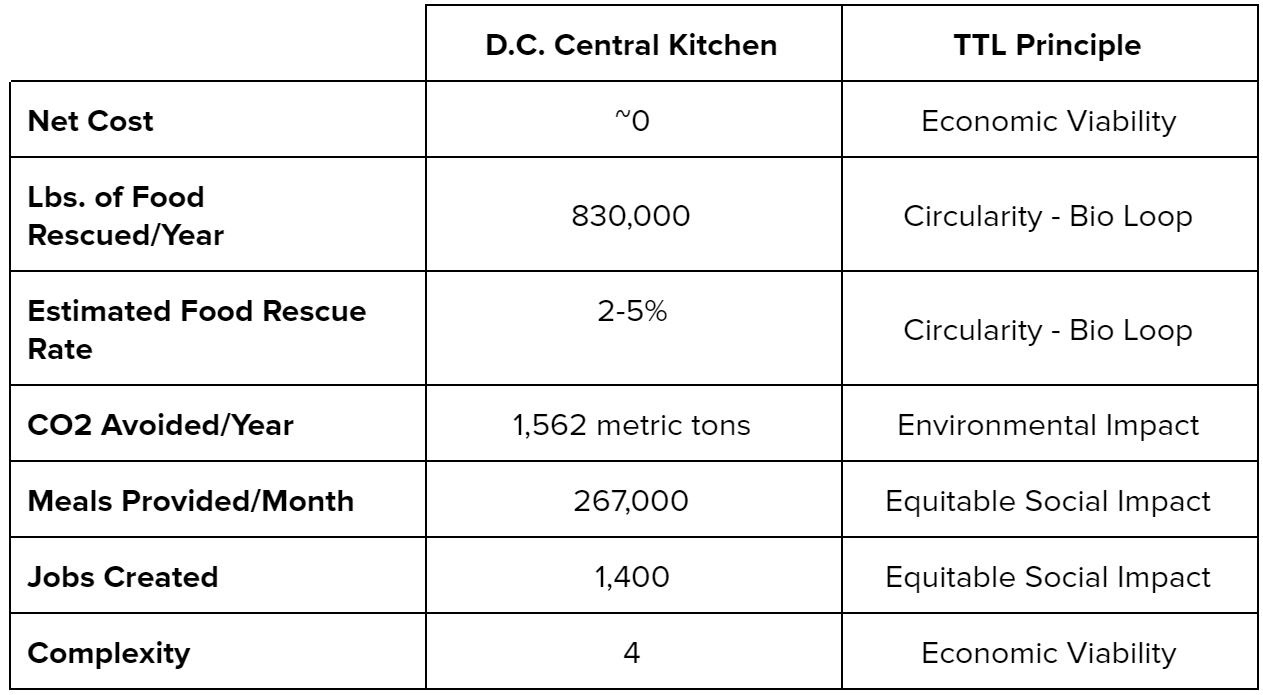 As with the previous case study, all metrics for the D.C. Central Kitchen are summarized below: